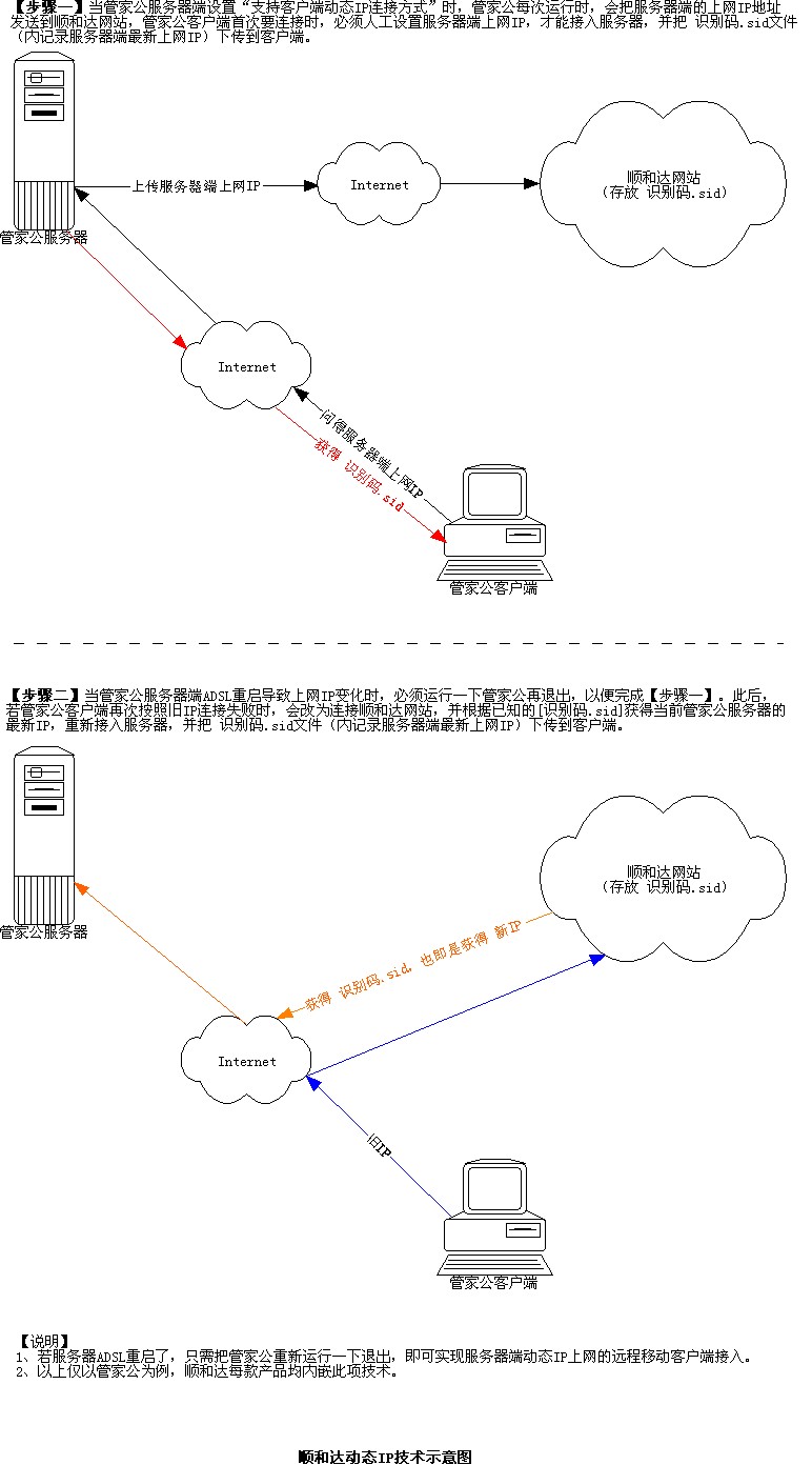 ·自動(dòng)IP:對(duì)于動(dòng)態(tài)IP上網(wǎng)的服務(wù)器端,無需任何工具或設(shè)置,即能相對(duì)固定地解析遠(yuǎn)程或移動(dòng)客戶端成功接入。一些品牌,則需用戶另外購(gòu)買一套幾百至幾千元的動(dòng)態(tài)IP固化解析軟件,或者,用戶需要每月向電信網(wǎng)絡(luò)供應(yīng)商繳納200-300元固定IP月租費(fèi)開支。 (技術(shù)示意圖)